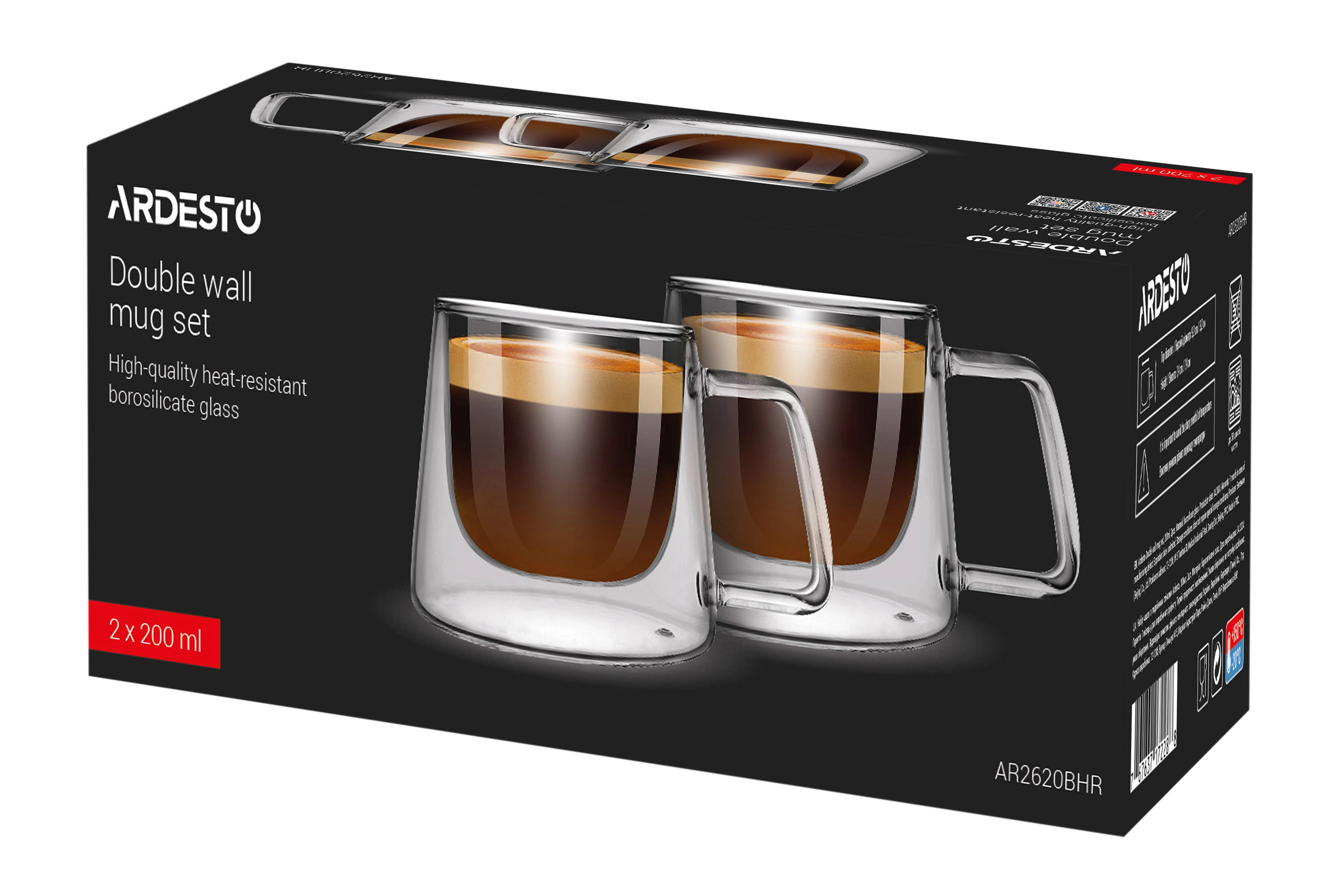 Набір чашок з ручками і подвійними стінками Ardesto, 200мл, 2шт, боросилікатне скло, прозорий