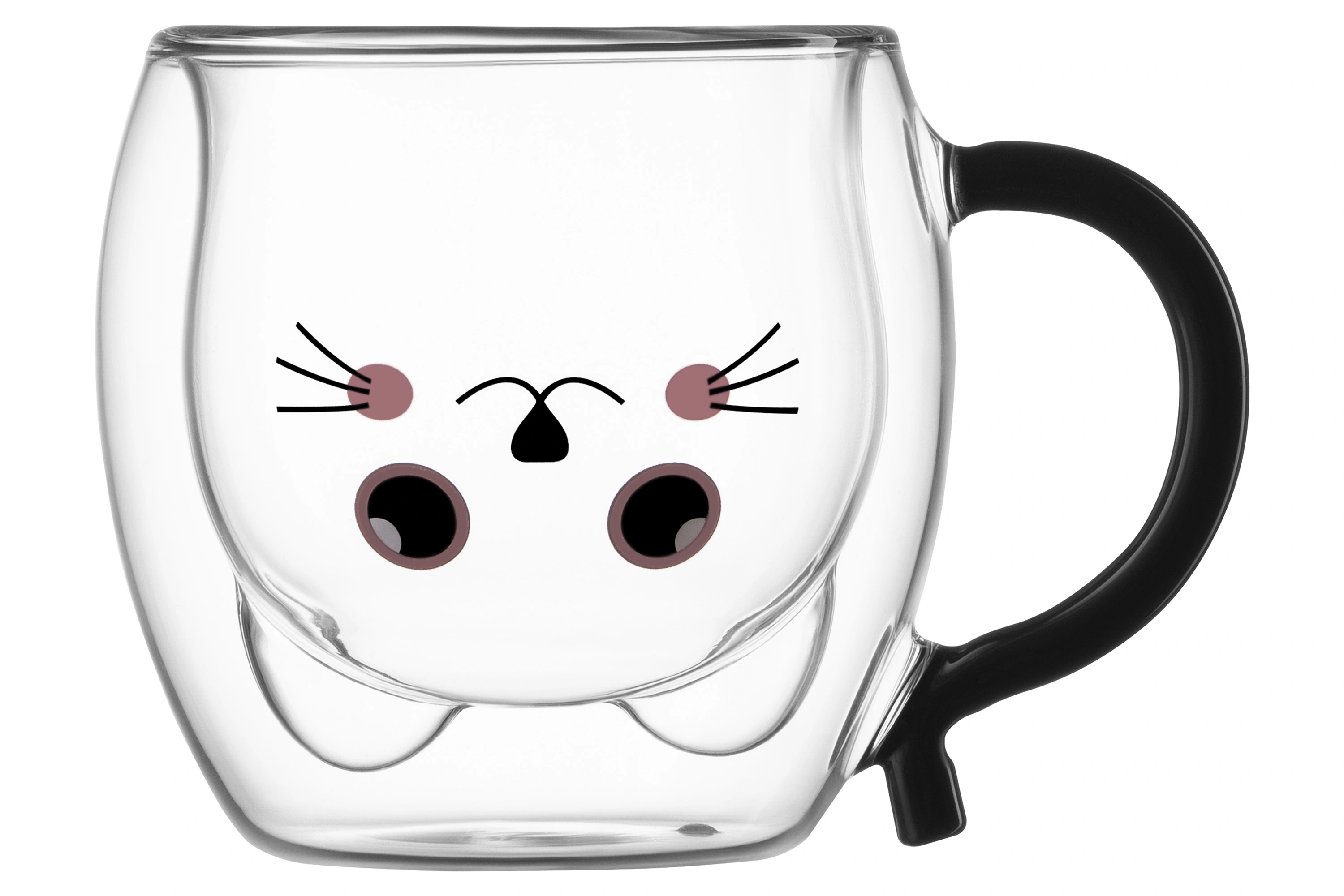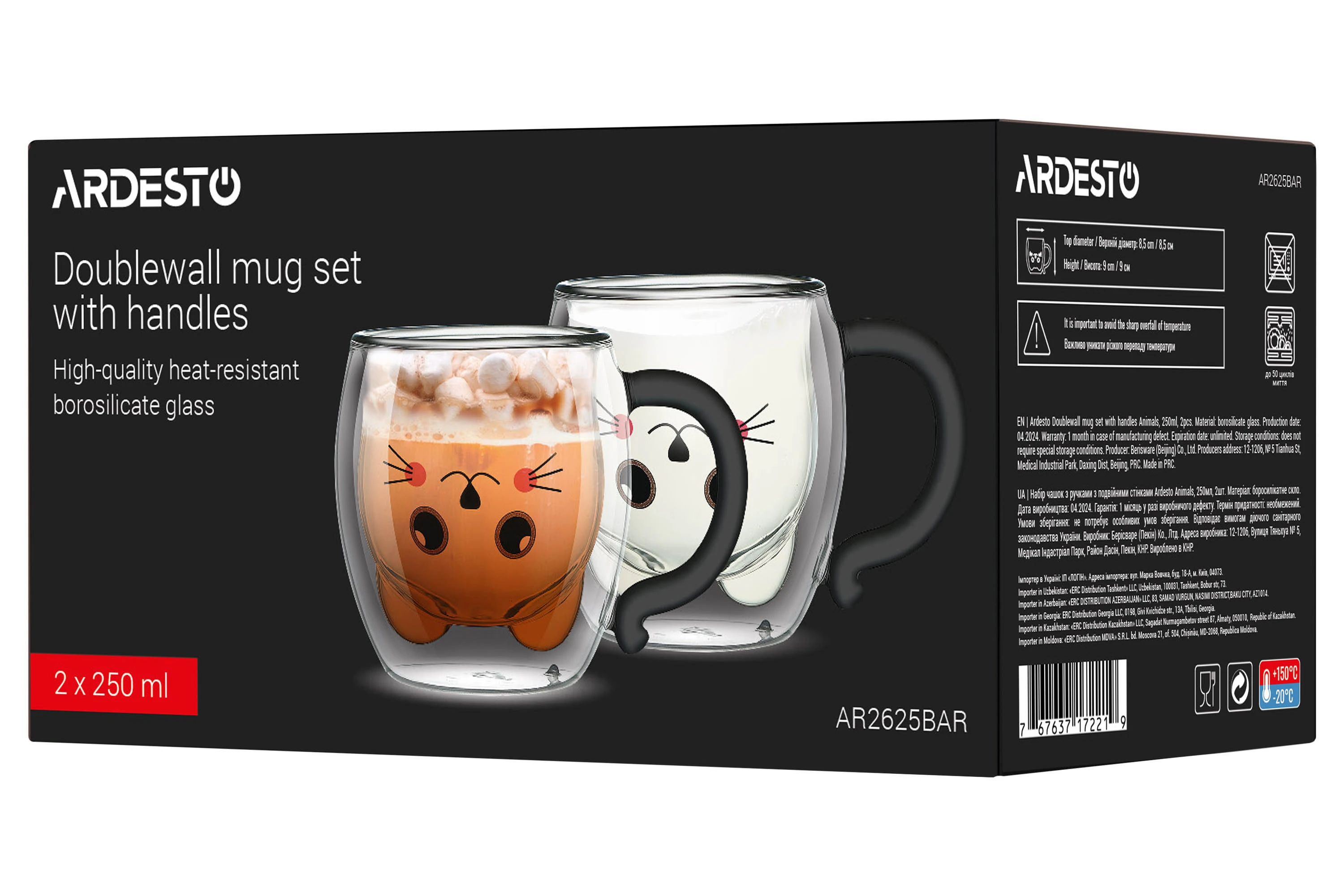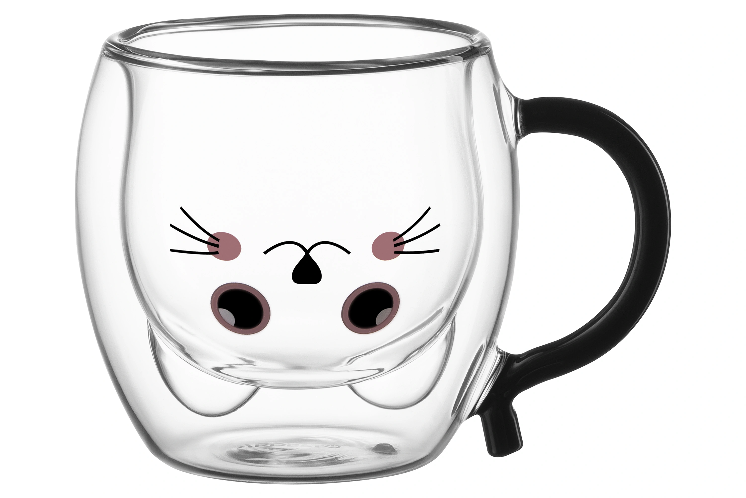 Набір чашок з ручками і подвійними стінками Ardesto Animals, 250мл, 2шт, боросилікатне скло, прозори