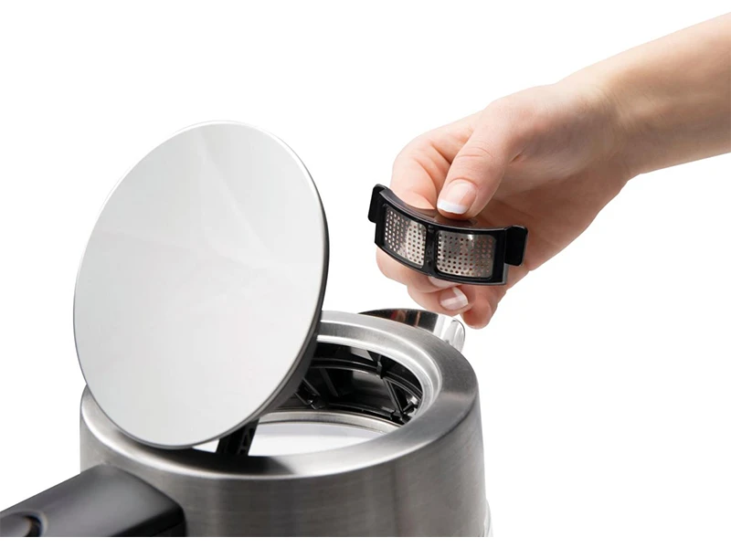 Якісний фільтр від накипу легко знімається і миється. Крім того, він запобігає крапанню води при наливанні у чашку.