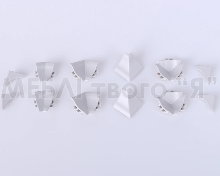 Кутові з'єднання: Вони використовуються для забезпечення гладкого та аккуратного з'єднання плінтусів під кутом 90 градусів. Завдяки цьому кути кухонних меблів виглядають привабливо та закінчено.