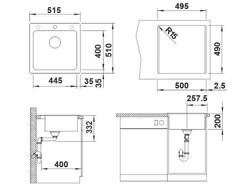 * Ширина мийки: 51 см