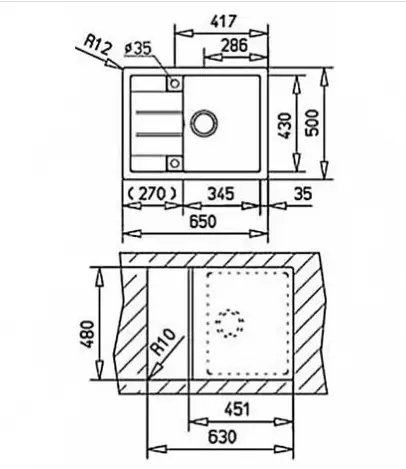 • Розміри: Загальні: 650 * 500 мм, Чаша: 345 * 430мм, глибина: 200 мм, Ширина кухонної секції: 45см