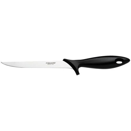 Кухонний ніж філейний Fiskars Essential, з гнучким лезом, 17.6см, нержавіюча сталь, пластик, чорний