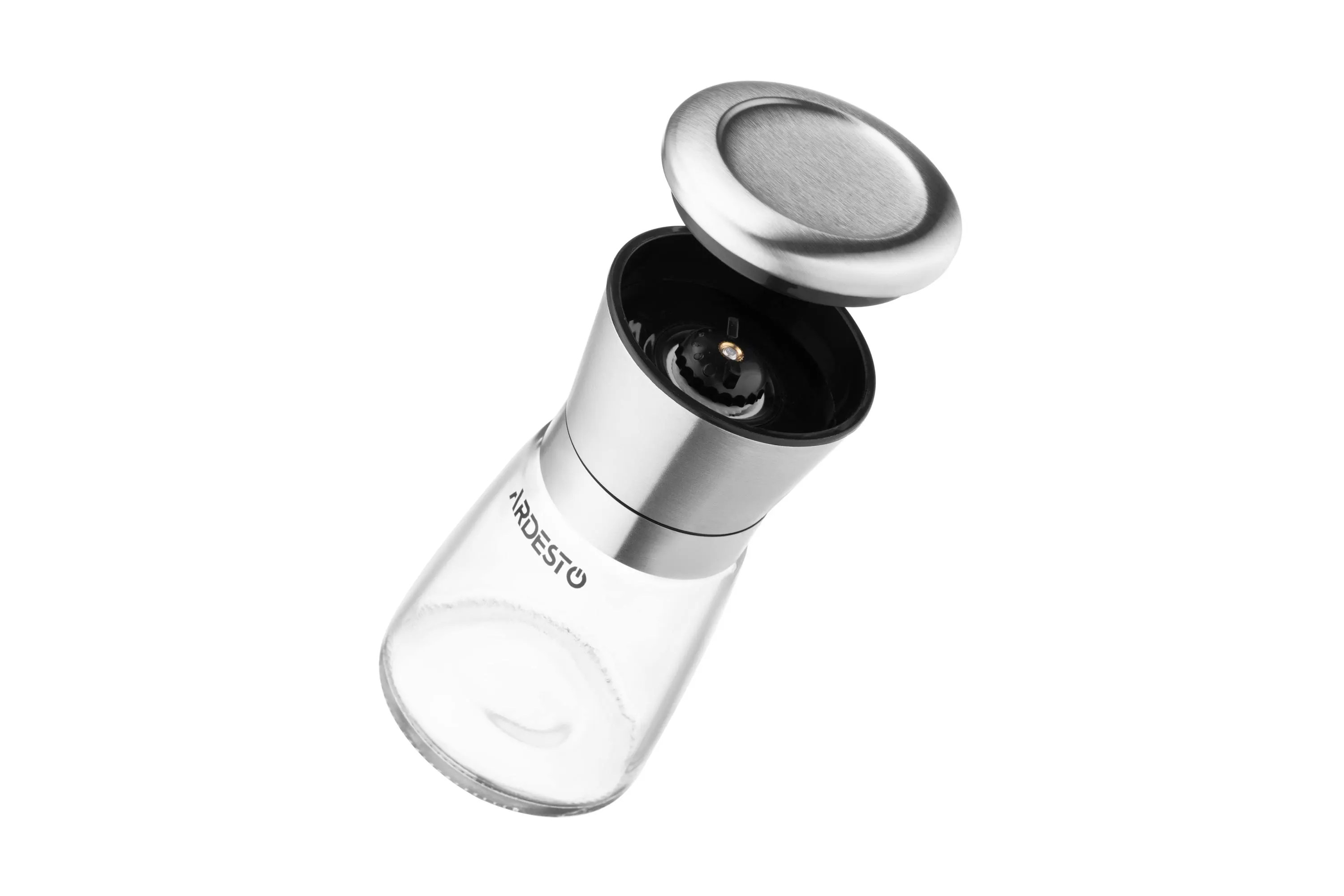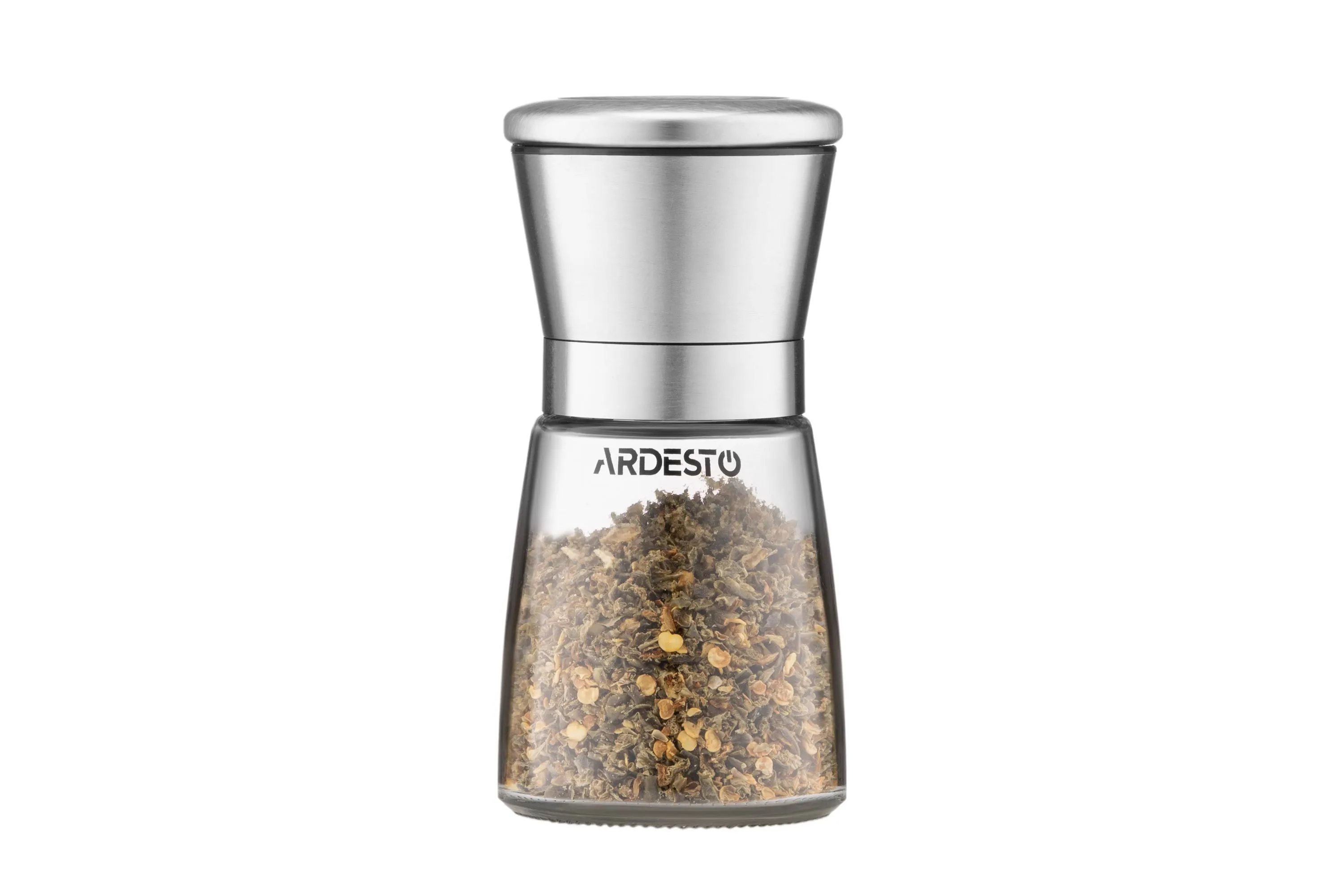 Млинок для солі та перцю Ardesto Gemini, 180мл, скло, нержавіюча сталь, прозорий