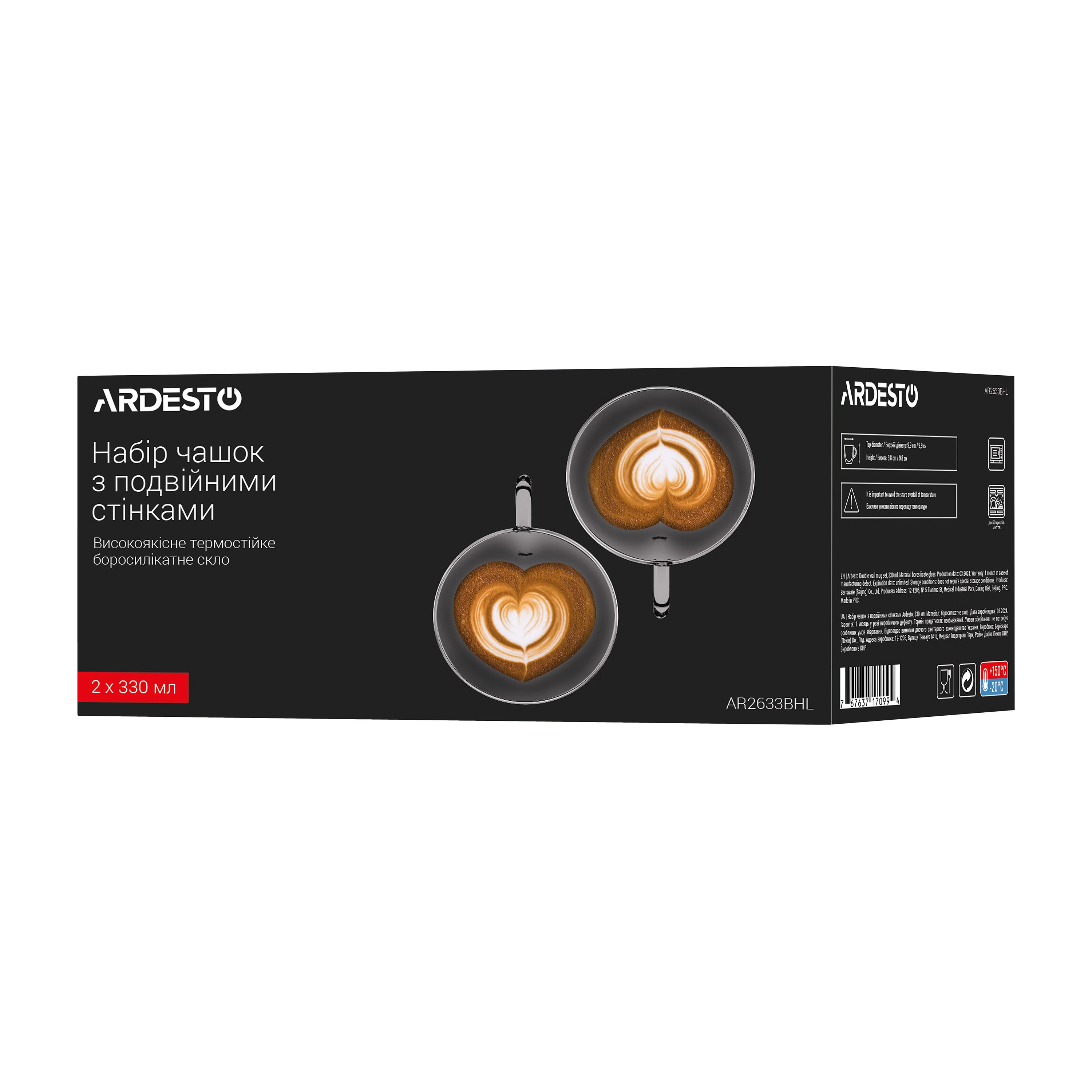 Чашки з подвійними стінками – це насолода для поціновувачів естетики та практичності. Вони надзвичайно міцні та легкі, витримують температуру від -20 до +150 °C. Їх можна використовувати як піали або креманки для морозива. Завдяки особливій конструкції здається, що напої та десерти в них парять у повітрі.