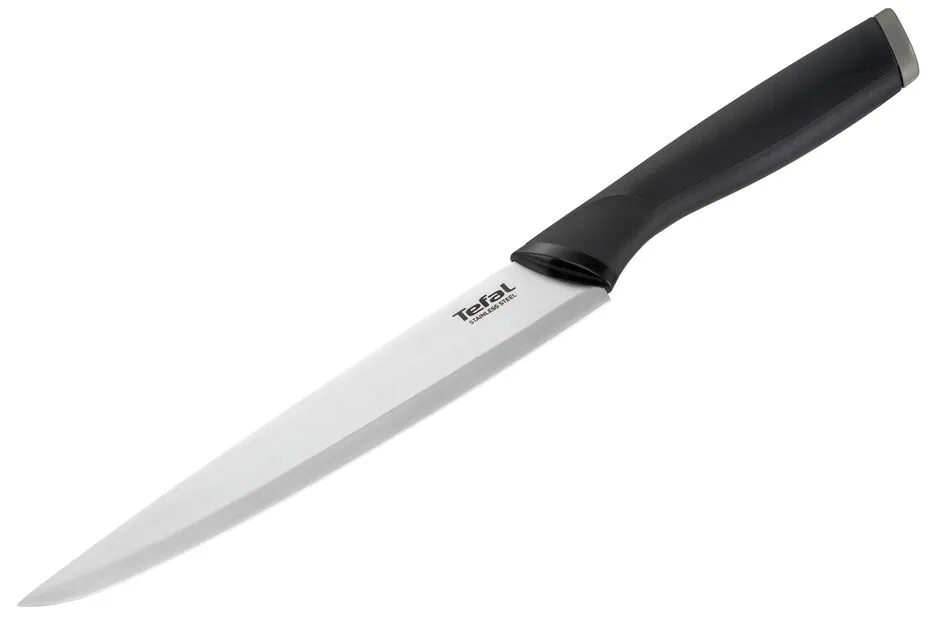Набір ножів Tefal Comfort з підставкою K221SA04 – ідеальний набір для щоденного домашнього використання. Ергономічна форма рукоятки для оптимального комфорту, зручності використання та ідеального контролю різання. Ножі виготовлені з високоякісної нержавіючої сталі, що гарантує ідеальне нарізування інгредієнтів щоразу. Кожен ніж має особливу форму та призначення, для роботи з певними продуктами. Спеціальна піктограма вказує на кожну комірку ножа на блоці для зручного зберігання. Гумові ніжки, що не ковзають захистять вашу стільницю.