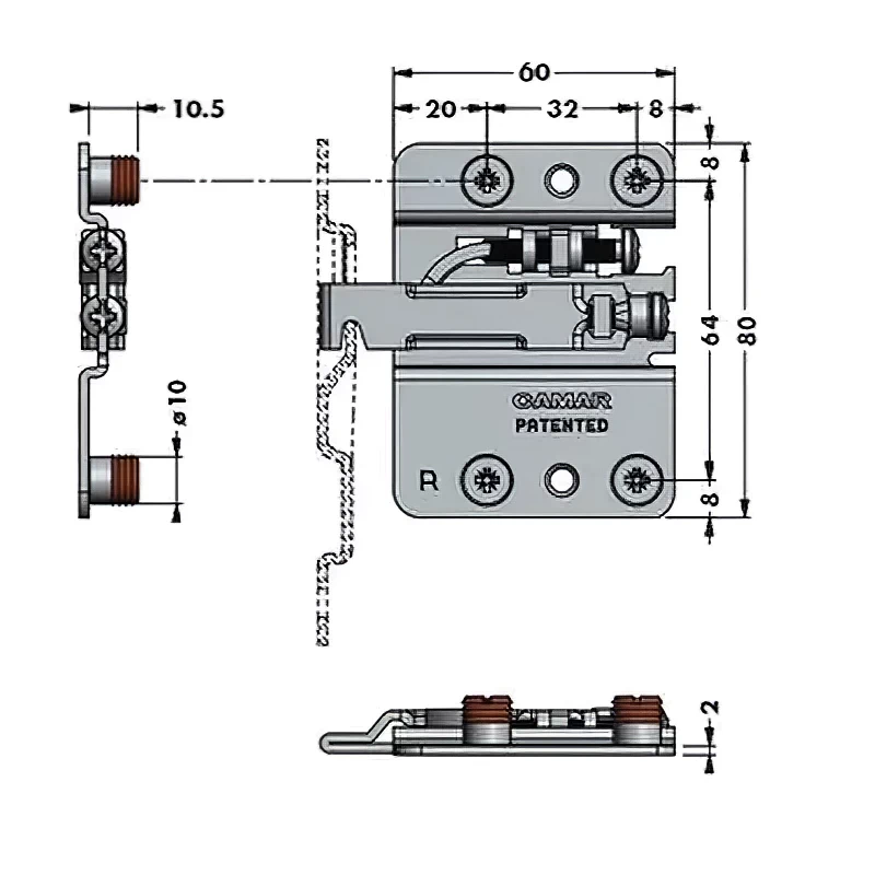 Підвіс під запресування з фіксацією від перекидання неприхований CAMAR 807.02.Z1.IN.DX правий 120кг