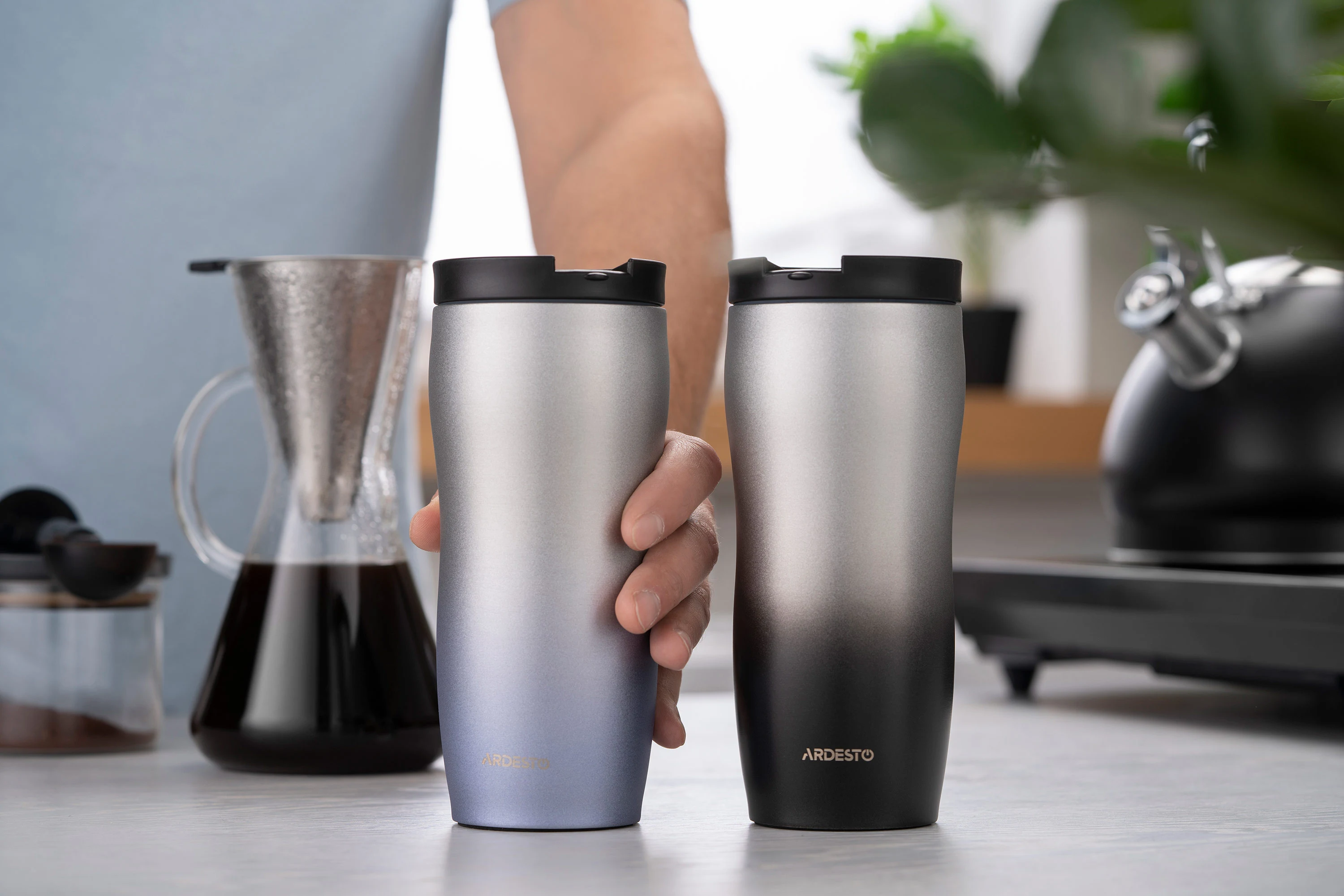Термокухоль ARDESTO Metallic виготовлено в ергономічному дизайні з високоякісної нержавіючої сталі. Механізм відкривання термокухля – зручна кришка-заскочка. Об’єм становить 450 мл. Термокухоль зберігає температуру гарячого напою 8 год, холодного – 16 год. Не містить BPA. Не рекомендовано мити в посудомийній машині.