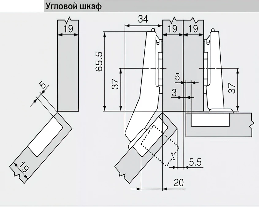 - Кут встановлення завіси 45