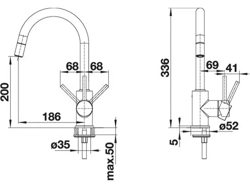 - Кут повороту виливу 360°