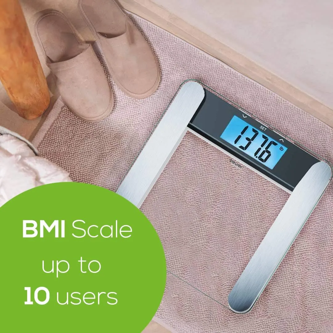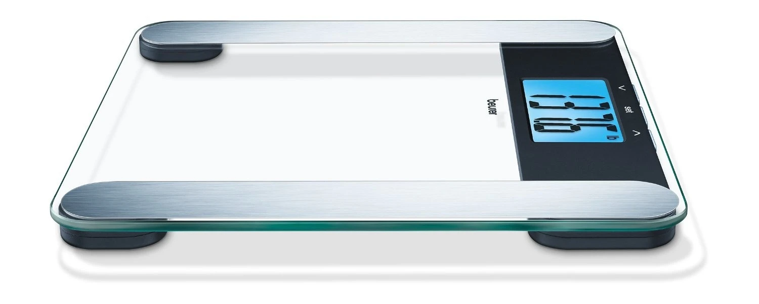 Ваги Beurer підлогові, 180кг, товщина 8мм, великий дисплей, СR2032x2 в комплекті, скло, прозорий